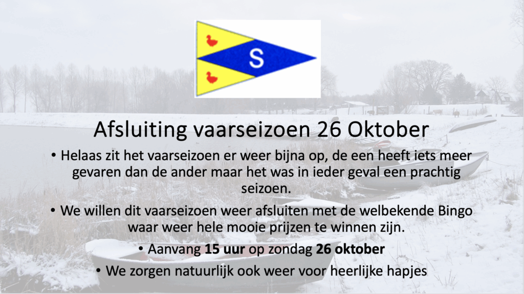 Helaas zit het zomerseizoen er weer op en hopenlijk heeft iedereen veel gebruik van de boot kunnen maken .